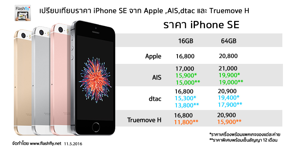 - iPhone SE ความจุ 16 GB ราคาเครื่องพร้อมแพคเกจ 11,800 บาท