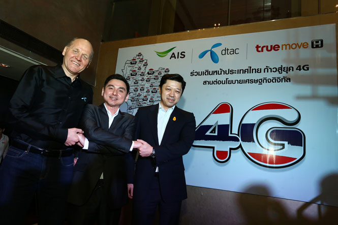 3 ค่าย มือถือ เอไอเอส ดีแทค และ ทรูมูฟ เอช ผสานเสียงสนับสนุนและแสดงความพร้อมในการเข้าร่วมการประมูลคลื่น 4G ในปี 2558 เพื่อสนองตอบนโยบายและแนวคิดของรัฐบาลที่ก้าวสู่เศรษฐกิจ ดิจิทัล โดย เอไอเอส มั่นใจ ไทยต้องมี Telecom Infrastructure โดยมุ่งเน้นพัฒนาระบบเทคโนโลยีใหม่ (Technology & Trend) ส่วน ดีแทค เน้นย้ำ 4G มีประโยชน์ช่วยพัฒนาอุตสาหกรรม นำบริการอินเทอร์เน็ตความเร็วสูงและการติดต่อสื่อสารสู่ทั้งสังคมเมืองและชนบททั่วประเทศไทย ขณะที่ ทรูมูฟ เอช เชื่อช่วยขับเคลื่อนเศรษฐกิจของประเทศ ยกระดับโครงสร้างพื้นฐานทางด้านโทรคมนาคม เพื่อเตรียมประเทศไทยก้าวสู่ระดับภูมิภาคและพร้อมเป็นศูนย์กลางของ AEC