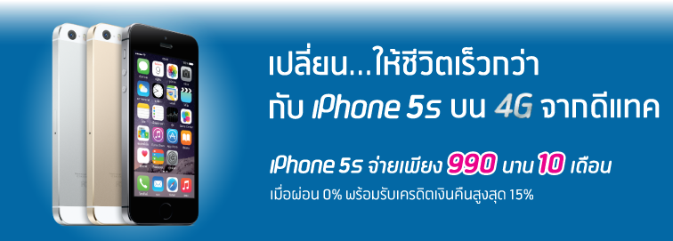 หลังจากที่ทาง Truemove H ได้จัดโปรนำ iPhone 4 และ 4s เครื่องเก่ามาเป็นส่วนลดซื้อ iPhone 6 ในราคาพิเศษกันไปแล้ว หรือแม้ทาง AIS เองก็จัดโปร iPhone 5s ราคาพิเศษอยู่ ทาง dtac ก็จัดโปรโมชั่นนำ iPhone 4 หรือ 4s เครื่องเก่าที่ไม่ต้องมีกล่องและอุปกรณ์เสริมที่อยู่ในสภาพตามเงื่อนไขที่กำหนด มาเปลี่ยนเป็น iPhone 5s เครื่องใหม่ รับส่วนลดสูงสุด 13,150 บาท พร้อมสมัครแพ็กเกจสุดคุ้มและรับสิทธิ์โปรโมชั่นผ่อนชำระ