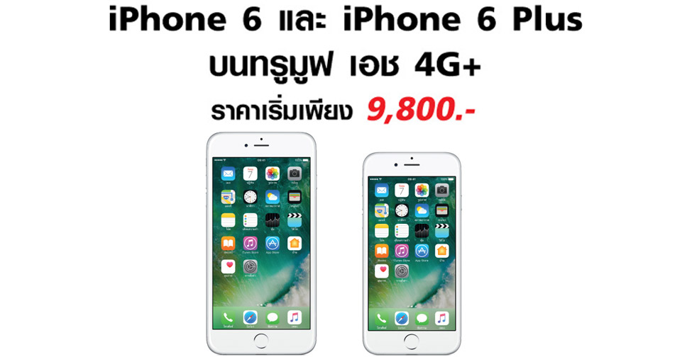 ทรูมูฟ เอช จัดให้ พบสุดยอด iPhone บนเครือข่ายทรูมูฟ เอช 4G+ ที่ดีที่สุด พร้อมข้อเสนอ iPhone 6 และ iPhone 6 Plus ในราคาเริ่มต้นเพียง 9,800 บาท สำหรับ iPhone 6 รุ่น 16GB เมื่อซื้อพร้อมสมัครแพ็กเกจ 899 ขึ้นไป ระยะสัญญา 12 เดือน พร้อมชำระค่าบริการล่วงหน้า 4,000 บาท(ไม่รวมภาษีมูลค่าเพิ่ม) โดยจะถูกหักเป็นส่วนลดค่าแพ็กเกจ 400 บาท นาน 10 เดือน โดยลูกค้าย้ายค่ายเบอร์เดิมลดเพิ่มอีก 1,000 บาท