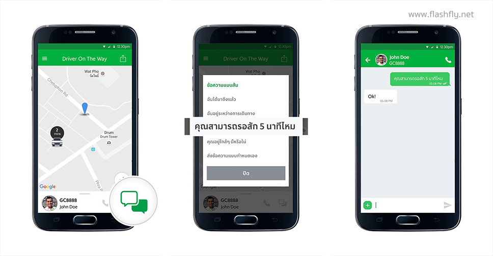 ขั้นตอนที่ 1: หลังจากทำการเรียกรถโดยสาร ไอคอนแกร็บแชทจะปรากฏขึ้นมาบนหน้าจอของผู้โดยสารโดยอัตโนมัติ