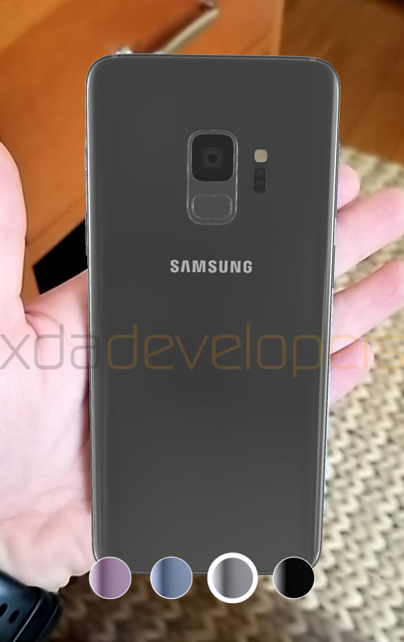 จากภาพโมเดล 3 มิติ ของสมาร์ทโฟน Galaxy S9 บอกได้ว่า Samsung จะผลิตออกมา 4 สี คือ สีม่วง, สีฟ้า, สีดำ และ สีเทา มีปุ่ม Bixby และย้ายตำแหน่งเซ็นเซอร์สแกนลายนิ้วมือไปไว้ใต้เลนส์กล้อง