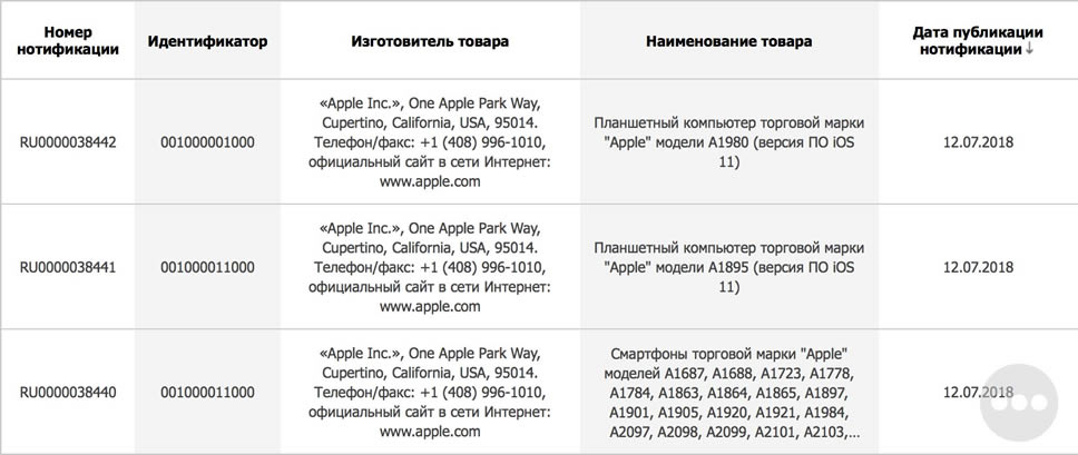 Apple จดทะเบียน iPhone และ iPad รุ่นใหม่กับ EEC (Eurasian Economic Commission) หรือ คณะกรรมาธิการความร่วมมือทางเศรษฐกิจในภูมิภาคยูเรเซีย ท่ามกลางข่าวลือว่า Apple จะเปิดตัวในเดือนกันยายนนี้