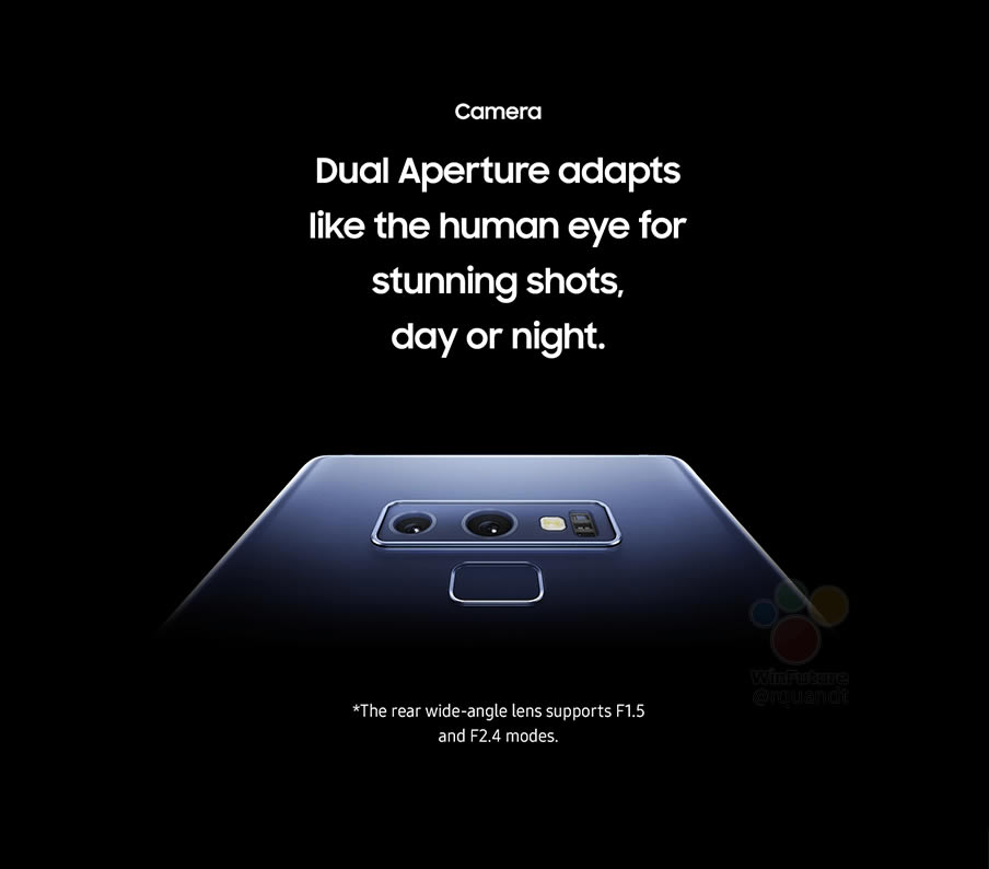 กล้องคู่หลังของ Samsung Galaxy Note 9 จะมีกลไกปรับขนาดรูรับแสงระหว่าง F1.5 กับ F2.4