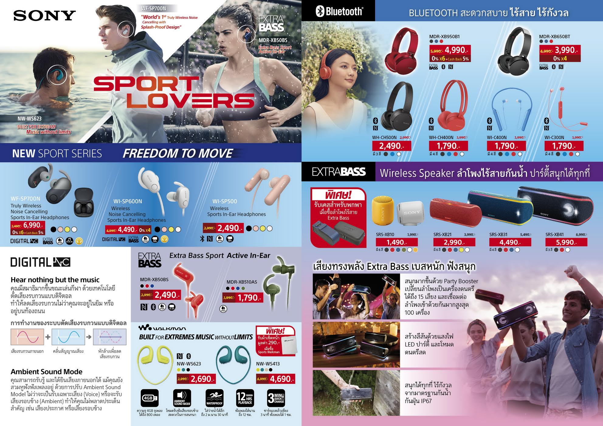 - Walkman รุ่น Sport แบบกันน้ำ ให้คุณได้เพลิดเพลินกับเสียงเพลงระหว่างออกกำลังกายได้อย่างไร้ขีดจำกัด ในราคาพิเศษ พร้อมรับผ้าขนหนู 1 ผืน โดยรุ่น NW-WS413 ราคาเหลือเพียง 2,690บาท และรุ่น NW-WS623 ที่มาพร้อม Bluetooth เหลือเพียง 4,690 บาท