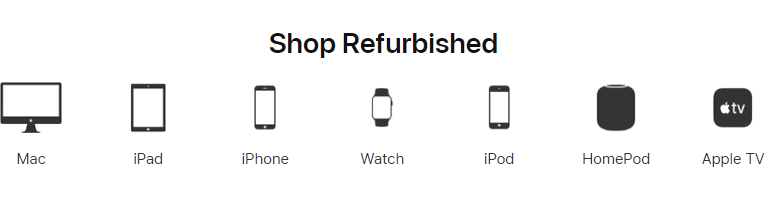 ผลิตภัณฑ์ Refurbished ของ Apple มีให้เลือกซื้อทั้ง iPhone, iPad, Apple Watch, iPod, HomePod, Apple TV, Mac รวมไปถึงอุปกรณ์เสริม โดยผลิตภัณฑ์ Refurbished ทั้งหมดจะได้รับการตกแต่งให้เหมือนสินค้าใหม่ มั่นใจได้ว่ามีคุณภาพดีกว่าสินค้ามือสองอย่างแน่นอน