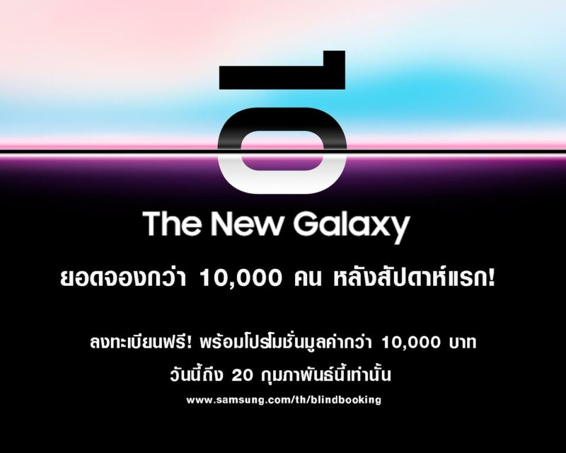 นอกจากนี้แคมเปญ“New Galaxy กล้ามั้ย จองก่อนวันเปิดตัว” ยังเปรียบเสมือนการขอบคุณแฟน ๆ กาแลคซี่ที่ให้การสนับสนุนอย่างเหนียวแน่น โดยซัมซุงเตรียมมอบสิทธิพิเศษเหนือกว่าถึง 3 ต่อ! ต่อที่1 รับ New Galaxy รุ่นใหม่ล่าสุดก่อนใครในวันที่ 25 ก.พ. นี้ ต่อที่ 2 มีสิทธิ์ร่วมรับโปรโมชั่นหลังการเปิดตัว มูลค่าสูงสุดกว่า 10,000 บาท และพิเศษ! ต่อที่ 3 สำหรับ 1,000 คนแรกที่จองและมารับเครื่อง รับเพิ่มของขวัญ Thank you Gift มูลค่า 1,590 บาท สามารถลงทะเบียนจองไม่มีค่าใช้จ่ายได้แล้ววันนี้ ทางเว็บไซต์ www.samsung.com/th/blindbooking ด่วน! ก่อนหมดเขตวันที่ 20กุมภาพันธ์นี้