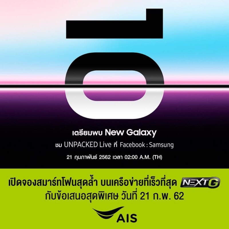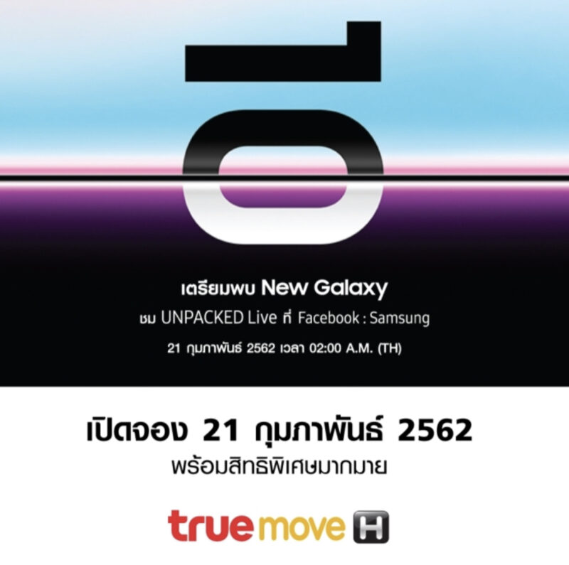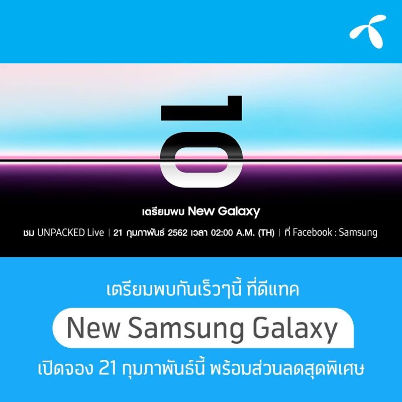 และล่าสุดวันนี้ทั้ง 3 ค่ายมือถือในประเทศไทยทั้ง AIS,dtac และ Truemove H ก็ได้พร้อมใจประกาศเตรียมเปิดจอง New Galaxy วันที่ 21 ก.พ. 62 นี้พร้อมข้อเสนอสุดพิเศษของแต่ละค่าย ซึ่งคาดว่าจะได้เห็นรายละเอียดทั้งหมดพร้อมราคาและโปรโมชั่น หลังงานเปิดตัวทางการอย่างแน่นอน