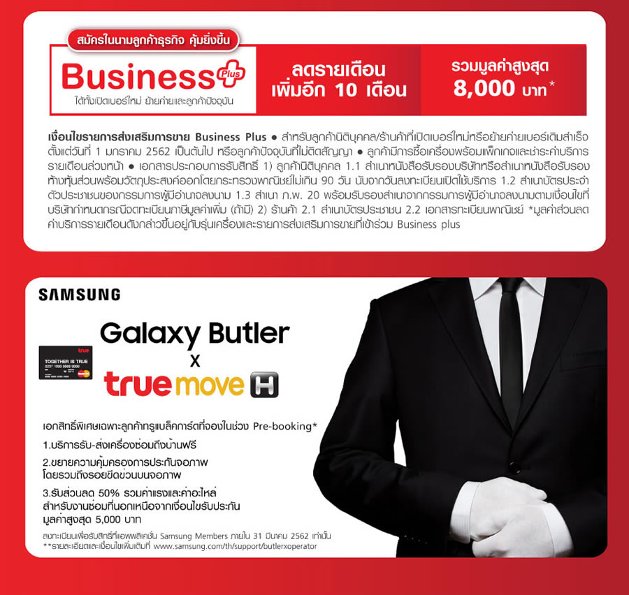 พิเศษ!! ส่วนลดสูงสุด 50% ไม่ต้องชำระค่าบริการล่วงหน้า สำหรับลูกค้า BLUE MEMBER และ GOLD MEMBER จดทะเบียนในนามบุคคลธรรมดา ที่มีอายุการใช้งาน 18 เดือนขึ้นไป และมีสถานะ BLUE MEMBER และ GOLD MEMBER ก่อนวันที่ 21 กุมภาพันธ์ 2562
