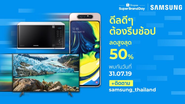 ช้อปผลิตภัณฑ์คุณภาพของซัมซุงที่ Samsung Official Store บนช้อปปี้ เพิ่มความมั่นใจด้วยนโยบายของ Shopee Mall ที่มาพร้อม นโยบายการคืนเงินหรือสินค้าภายใน 15 วัน พร้อมการันตีของแท้ 100% การจัดส่งฟรีทั่วประเทศ นักช้อปสามารถเพลิดเพลินและสะดวกสบายยิ่งขึ้นกับการผ่อนชำระดอกเบี้ย 0% นาน 10 เดือนเมื่อมียอดซื้อสินค้าขั้นต่ำ 3,000 บาท เพลิดเพลินไปกับแคมเปญ “Now’s Your Chance” ได้ตั้งแต่วันที่ 25 – 31 กรกฎาคม 2562 ติดตามรายละเอียดเพิ่มเติมได้ที่ https://shopee.co.th/sbd-samsung