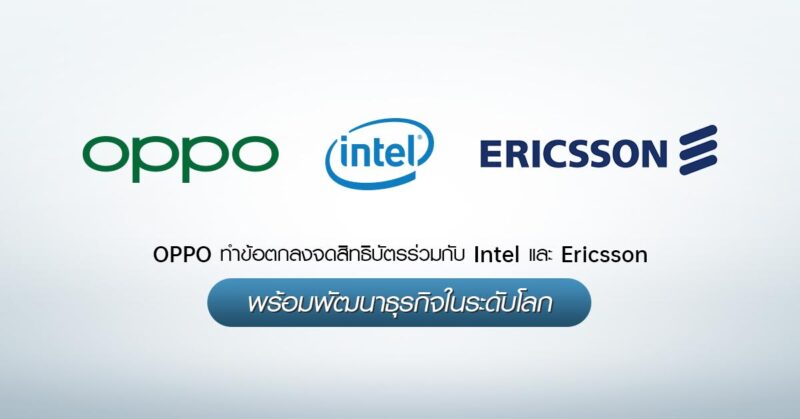 OPPO ได้ลงนามข้อตกลงการโอนสิทธิบัตรร่วมกับ Intel ในการโอนสิทธิบัตร 58 ฉบับที่เกี่ยวข้องกับเทคโนโลยีการสื่อสารโทรศัพท์เคลื่อนที่ พร้อมทั้งซื้อสิทธิในการใช้สิทธิบัตรของ Ericsson อีกกว่า 500 ฉบับ โดยครอบคลุมประเทศและรัฐในสหรัฐอเมริกา ยุโรป จีนและอินเดีย ซึ่งสิทธิบัตรด้านการสื่อสารที่มีการป้องกันความปลอดภัยของ Intel และ Ericsson จะเพิ่มความสามารถในการพัฒนาเทคโนโลยีของ OPPO ให้ธุรกิจเติบโตในตลาดโลกได้