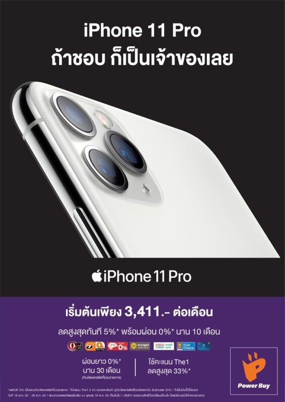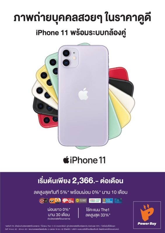 สำหรับข้อเสนอสุดเอ็กซ์คูลชีพที่รวมสุดยอดบริการและโปรโมชั่นที่คุ้มค่าที่สุด เมื่อซื้อ iPhone 11, iPhone 11 Pro และ iPhone 11 Pro Max ผ่าน “เพาเวอร์บาย” เท่านั้น อาทิ