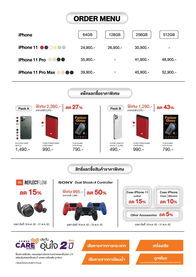 ทั้งหมดนี้คือ ที่สุดของสิทธิพิเศษมากมาย ที่เพาเวอร์บาย เตรียมสร้างประสบการณ์ที่ดีและสร้างความประทับใจในการเลือกซื้อสินค้า และการให้บริการหลังการขายที่ตอบโจทย์ในทุกๆไลฟ์สไตล์ของลูกค้าผ่านทุกช่องทางของ เพาเวอร์บาย ลูกค้าที่พรีออเดอร์และลูกค้าทั่วไปสามารถซื้อ iPhone 11 ทุกรุ่นได้ แต่วันที่ 18 ต.ค. 62 เป็นต้นไปที่ร้านเพาเวอร์บายทุกสาขาทั่วประเทศ
