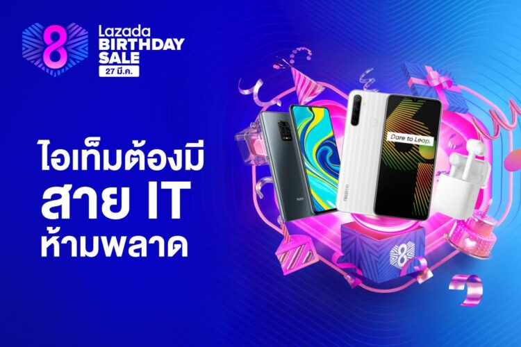 25 มีนาคม 2563, กรุงเทพฯ – ลาซาด้าชวนนักช้อปสายเทค ช้อปอยู่บ้านวันเกิดครบรอบ 8 ปีกับแคมเปญ “Lazada 8th Birthday Sale” ส่งสมาร์ทโฟนสเป็คแรง ราคาดี แกดเจ็ตล้ำดีไซน์โดน พร้อมส่วนลด โปรโมชั่นและของแถมจัดเต็ม มาดูกันว่ามีสมาร์ทโฟนและแกดเจ็ตเด็ดๆ อะไรน่าสอยบ้าง แอบกระซิบว่าไฮไลต์เด็ดบางชิ้นก็มีเฉพาะแค่ในลาซาด้าที่เดียวด้วยนะ! ปักหมุดรอ 27 มีนาคมนี้ วันเดียวเท่านั้น!
