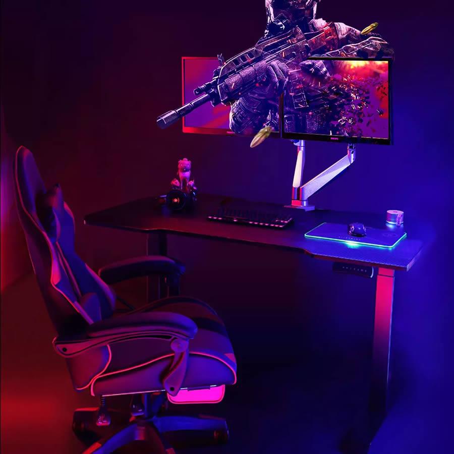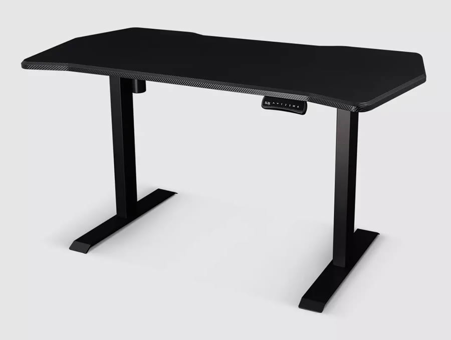 โต๊ะคอมพิวเตอร์ Loctek Electric Standing Desk ออกแบบมาอย่างโฉบเฉี่ยวเหมาะสำหรับเกมเมอร์ บนพื้นโต๊ะเป็นลายคาร์บอนไฟเบอร์ รองรับน้ำหนักสูงสุด 70 กิโลกรัม และมีจุดเด่นที่สามารถปรับระดับความสูงได้ โดยมีปุ่มควบคุมอยู่ทางขวามือ พร้อมจอแสดงผลบอกระดับความสูง สามารถปรับความสูงได้ในช่วง 71 – 121 เซนติเมตร