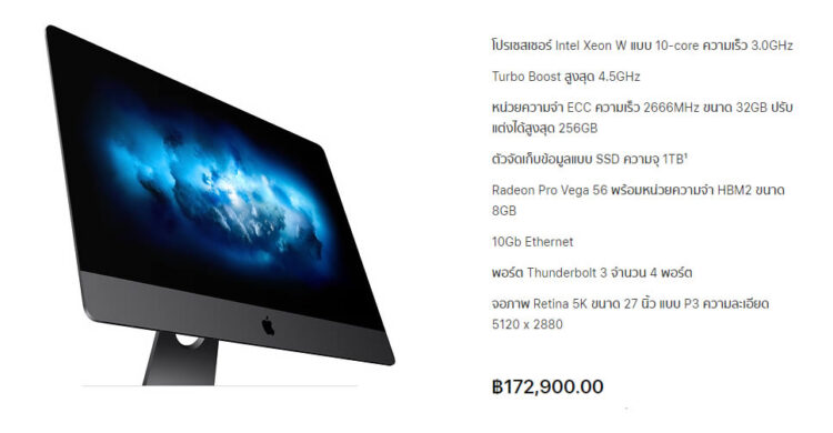 iMac Pro รุ่นพื้นฐาน ที่ได้รับการอัพเกรดโปรเซสเซอร์ 10-Core ยังคง วางจำหน่ายในราคา 4,999 ดอลล่าร์สหรัฐ หรือ 172,900 บาท