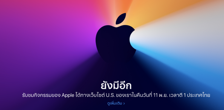 Apple จัดกิจกรรมพิเศษขึ้นอีกครั้ง ในวันที่ 10 พฤศจิกายน ซึ่งตรงกับเวลา 01.00 น. ของวันที่ 11 พฤศจิกายน ตามเวลาในประเทศไทย โดยมีชื่อว่า One more thing โดยเป็นงานเปิดตัวผลิตภัณฑ์ใหม่แบบเสมือนจริง เหมือนกิจกรรม Time Flies ที่จัดขึ้นในเดือนกันยายน และ Hi, Speed ในเดือนตุลาคมที่ผ่านมา