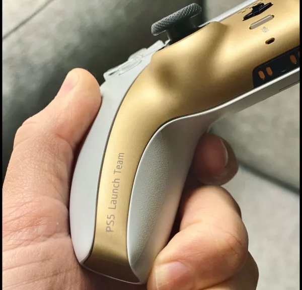DualSense รุ่นพิเศษถูกสลักชื่อ PS5 Launch Team ซึ่งหมายความว่ามีไว้สำหรับทีมงานของ PlayStation ในช่วงเปิดตัวเท่านั้น โดยบอดี้หลักยังเป็นสีขาวเหมือนกับ DualSense เวอร์ชั่นปกติ แต่ส่วนที่เป๊นสีดำกลับเป็นสีทองที่น่าดึงดูดแทน และดูเหมือนทาง Sony ยังไม่มีแผนเพิ่มตัวเลือกใหม่ๆ ให้กับ DualSense ในเร็วๆ นี้