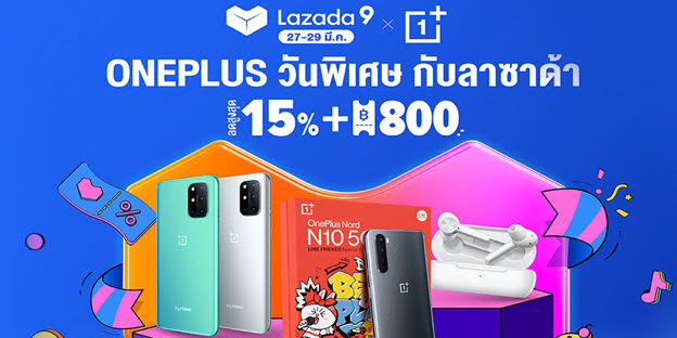 คุ้มหนัก OnePlus ลดสูงสุด 15% ทั้งสมาร์ทโฟนตัวท็อป หูฟังและอุปกรณ์เสริม พร้อมแจกคูปองลดเพิ่มอีก 800 บาท และพลาดไม่ได้! กับ Live แจกของรางวัลฟรี เตรียมช้อปเลย เฉพาะวันพิเศษ 27 – 29 มีนาคม 2564 นี้ ที่ Lazada เท่านั้น