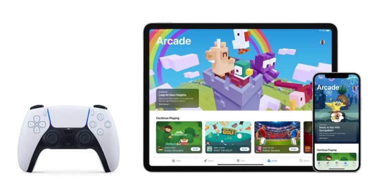 DualSense รองรับการจับคู่กับ iPad, iPhone, Mac หรือ Apple TV ผ่าน Bluetooth เพื่อเล่นเกมจาก Apple Arcade หรือ สตรีมเกมจาก PlayStation 5 หรือ PlayStation 4 ไปยัง iPad, iPhone หรือ Mac โดยใช้แอพ PS Remote Play โดย iPad, iPhone, Mac และ Apple TV จะต้องอัพเดทเป็น iOS 14.5, iPadOS 14.5, macOS 11.3 และ tvOS 14.5