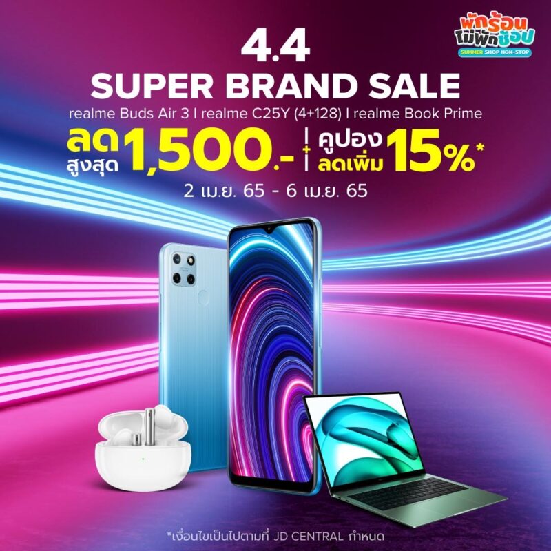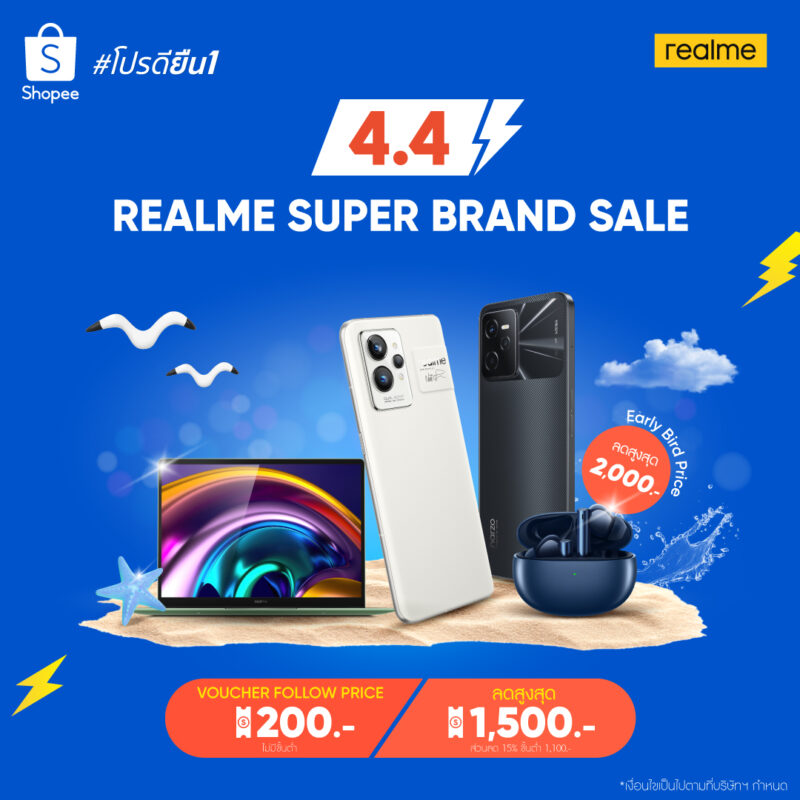 แบรนด์เทคโนโลยีเพื่อคนรุ่นใหม่ที่เติบโตเร็วที่สุดในโลก จัดโปรโมชั่นพิเศษ 4.4 realme MEGA SALES เอาใจแฟน ๆ เรียลมี ในช่วงเทศกาลปีใหม่ไทยที่ใกล้จะถึงนี้ มอบส่วนลดพิเศษสูงสุด 50% พร้อมรับโค้ดสูงสุด 1,500 บาท ที่ realme Official Store บน 3 ช่องทางออนไลน์ยักษ์ใหญ่ ทั้ง Shopee Lazada และ JD Central พิเศษ! สำหรับ Top Spender สูงสุด 10 คนแรก รับฟรี! ของสมนาคุณ