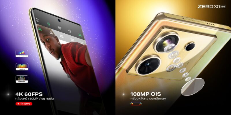 อินฟินิกซ์ (Infinix) แบรนด์สมาร์ตโฟนระดับโลกที่ตอบโจทย์ไลฟ์สไตล์คนรุ่นใหม่ เปิดตัวมือถือ Infinix ZERO 30 5G ภายใต้สโลแกน “Capture Your Own Story – เก็บทุกโมเมนต์ที่เป็นคุณ” ซึ่งเป็นอีกหนึ่งรุ่นในซีรีส์ ZERO ที่ได้ยกระดับทุกการใช้งาน และมอบประสบการณ์การถ่ายภาพบนมือถือที่เหนือระดับ ชูความโดดเด่นด้วยการเป็นสมาร์ตโฟนรุ่นแรกในตลาดราคากลางที่มาพร้อมกล้องหน้า 4K 60FPS เพื่อการสร้างสรรค์คอนเทนต์วิดีโอ Vlog แบบคมชัด และเอาใจคนหนุ่มสาวที่ชื่นชอบการถ่ายวิดีโอกับกล้องหน้าความละเอียด 50MP ผสานกับโปรเซสเซอร์ 5G MediaTek Dimensity 8020 ขนาด 6 นาโนเมตร ที่มาพร้อมหน้าจอขนาดใหญ่ 3D Curved AMOLED อัตราการรีเฟรชที่ 144Hz เพื่อรองรับทุกการใช้งานและเติมเต็มอรรถรสด้านความบันเทิงได้อย่างเต็มประสิทธิภาพ มาพร้อม ROM 256 GB เปิดตัวในราคา 11,999 บาท วางจำหน่ายแบบ Online ที่ร้าน Infinix Official Store บน Shopee, Lazada, TikTok Shop และสามารถหาซื้อได้ที่ร้าน BaNANA พร้อมรับของแถมมากมายมูลค่ารวม 5,340 บาท* ประกันเครื่อง 2+5 ปี ประกันหน้าจอ 180 วัน ได้ตั้งแต่วันที่ 15 กันยายน 2566 เป็นต้นไป