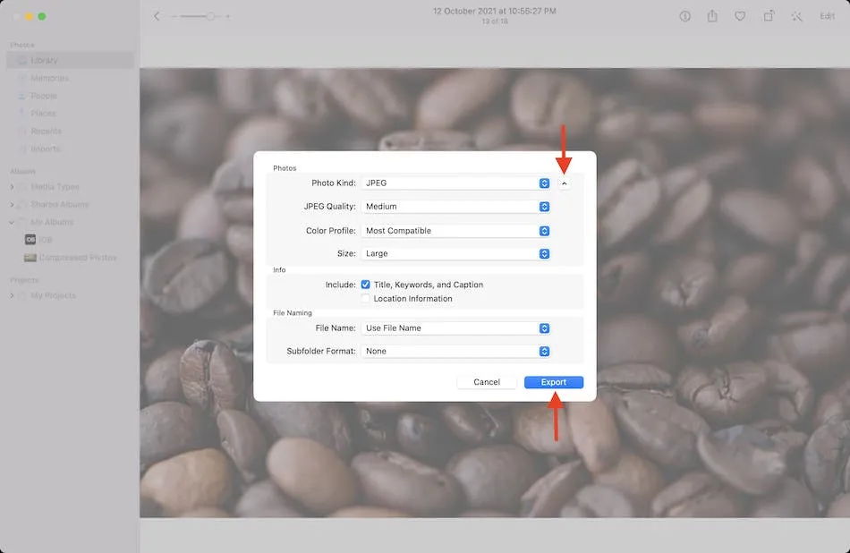 5) ใช้แอป Photos บน Mac เพื่อบีบอัดภาพ