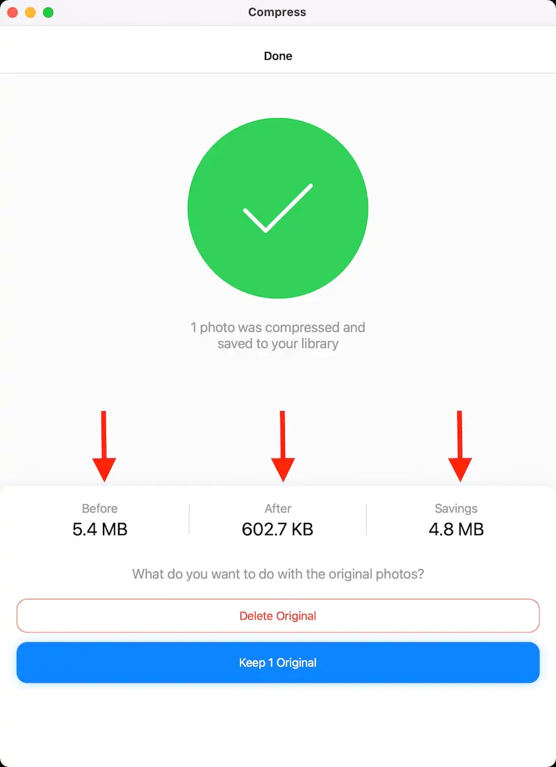 หากไม่ต้องการใช้แอป Preview หรือ Photos ที่มากับ macOS ใน App Store ของ Mac ยังมีแอปพลิเคชั่นสำหรับบับอัดรูปภาพให้เลือกใช้อีกหลายแอป อย่างเช่นแอป Compress Photos & Pictures ซึ่งปกติเป็นแอปสำหรับ iPhone และ iPad จึงสามารถติดตั้งบน Mac ที่ใช้ชิปของ Apple Silicon เท่านั้น สำหรับเจ้าของ Mac รุ่นเก่า สามารถค้นหาคำว่า Compress Photos ใน App Store ของ Mac เพื่อเลือกดูแอปอื่นๆ ได้
