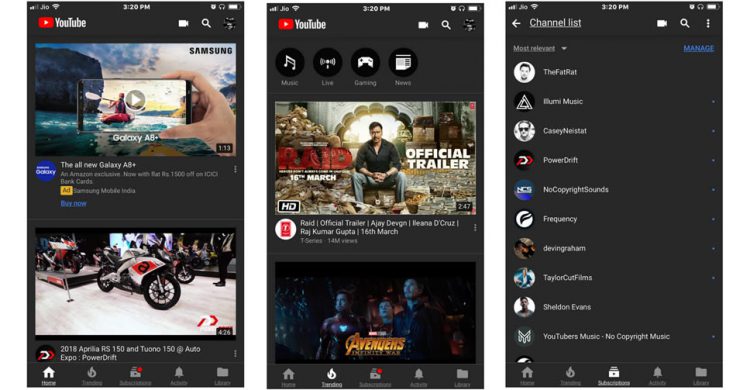 Google ปล่อยอัพเดทแอพพลิเคชั่น YouTube สำหรับอุปกรณ์ iOS ออกมาในวันนี้ โดยนำฟีเจอร์ Dark Theme มาให้ใช้งาน หลังจากมีการทดสอบในเดือนมกราคมที่ผ่านมา โดยเป็นฟีเจอร์ที่มีอยู่แล้วบนเวอร์ชั่น Desktop สำหรับ PC ซึ่งการเปลี่ยนมาใช้ Dark Theme จะทำให้การแสดงผลของ User Interface เปลี่ยนเป็นสีเทาเข้ม ช่วยให้สบายตามากขึ้นเมื่อใช้งานในที่แสงน้อยหรือเวลากลางคืน