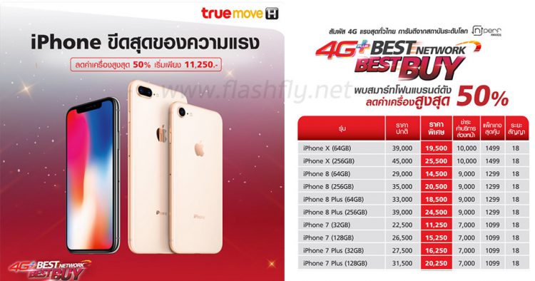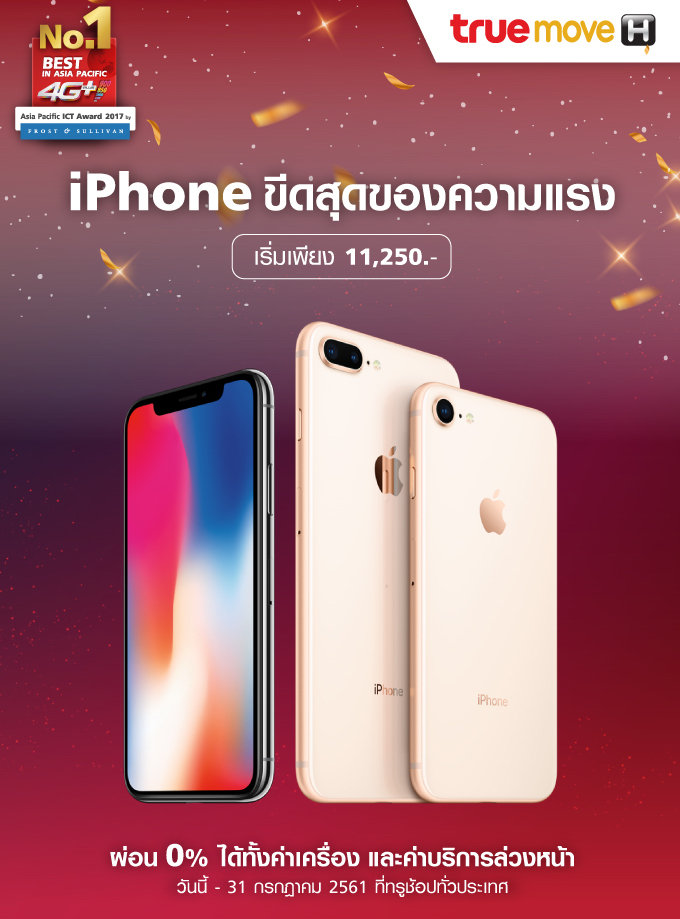 มาอีกแล้วโปรโมชั่นลดราคา iPhone ล่าสุดจาก Truemove H ที่มอบส่วนลดสูงสุดถึง 50% เลยทีเดียวกับ iPhone 7,iPhone 7 Plus ,iPhone 8 ,iPhone 8 Plus และ iPhone X เริ่มต้นเพียง 11,250 บาทเท่านั้น เมื่อสมัครแพ็คเกจ 1099 ,1299 และ 1499 ติดสัญญา 18 เดือนพร้อมชำระค่าบริการล่วงหน้า 7,000 บาท ,9,000 บาทหรือ 10,000 บาท ตามเงื่อนไขกำหนด สามารถผ่อน 0% ได้ทั้งค่าเครื่องและค่าบริการล่วงหน้า ตั้งแต่วันนี้ถึง 31 กรกฎาคม 2561 ที่ทรูช้อปทุกสาขา โดยมีรายละเอียดตามตารางดังต่อไปนี้