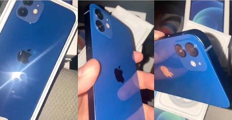 สำหรับ iPhone 12 มาในสีน้ำเงิน ได้รับแผ่นกระดาษแทนที่แผ่นพลาสติกสำหรับปกป้องหน้าจอ เช่นเดียวกับ iPhone 12 Pro ขณะที่ขนาดกล่องก็บางลงอย่างเห็นได้ชัด เนื่องจากภายในกล่องไม่ได้แถมหูฟังกับอุปกรณ์ชาร์จแบตเตอรี่มาให้อีกแล้ว