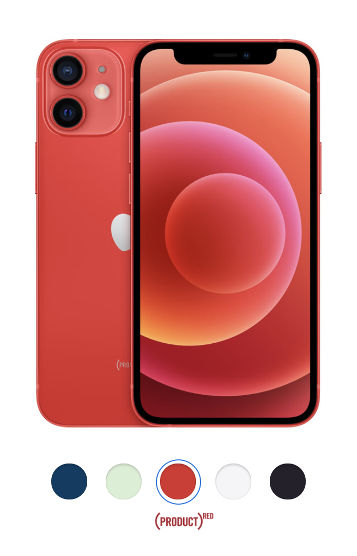 iPhone 12 mini และ iPhone 12 มีให้เลือก 5 สี ได้แก่ สีน้ำเงิน, สีเขียว, สีดำ, สีขาว และ สีแดง (PRODUCT)RED