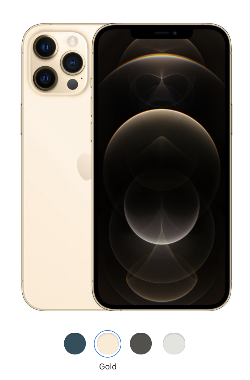 iPhone 12 Pro และ iPhone 12 Pro Max มีให้เลือก 4 สี ได้แก่ สีกราไฟต์, สีเงิน, สีทอง และ สีแปซิฟิกบลู
