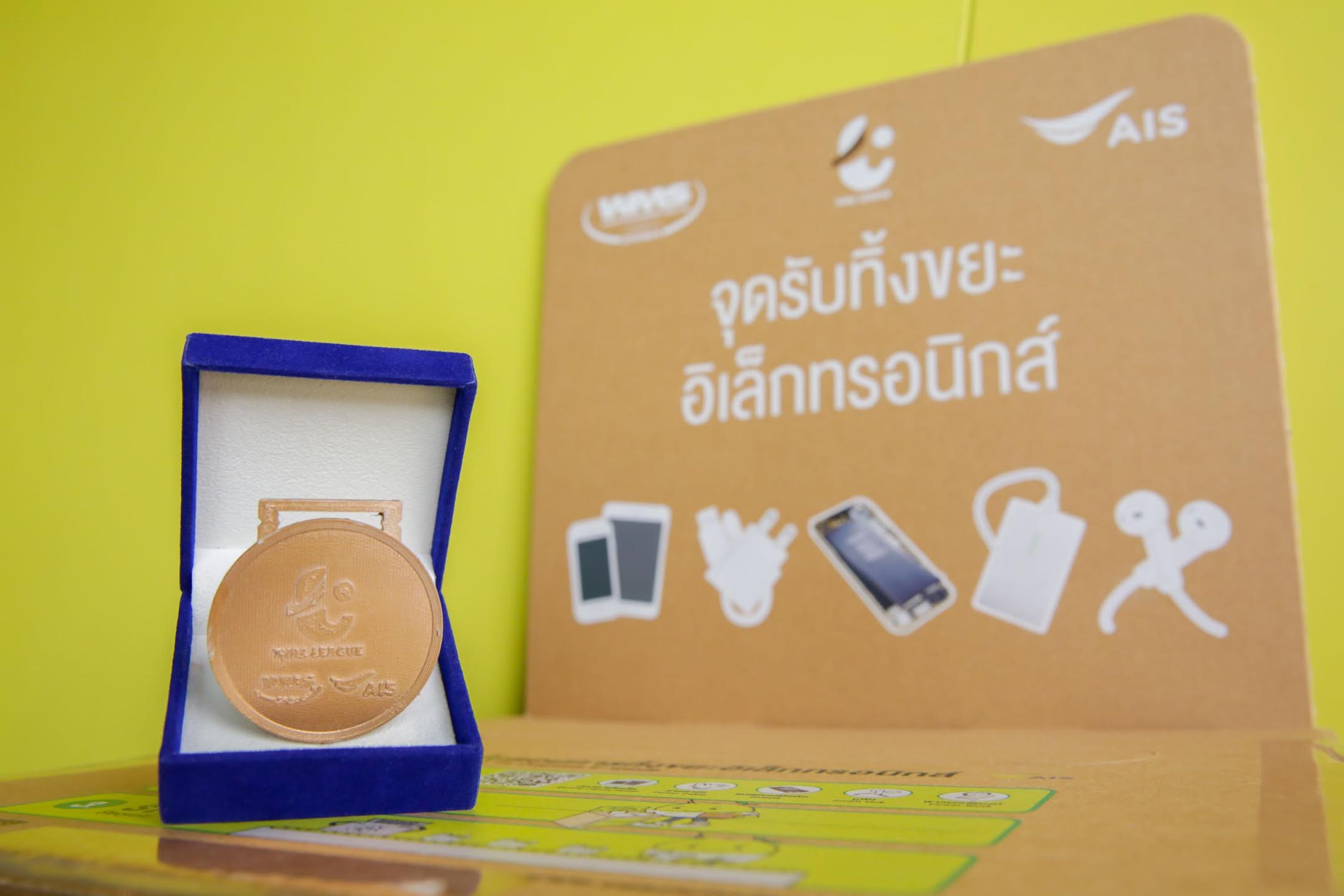 ทางด้าน นายฮิโรมิตสึ ทาคากิ ผู้อำนวยการบริหาร บริษัท เวสท์ แมเนจเม้นท์ สยาม จำกัด อธิบายเสริมว่า “จากการทำงานร่วมกับ AIS ในการนำขยะ E-Waste เข้าสู่กระบวนการรีไซเคิลอย่างถูกต้องแบบ Zero Landfill ตามมาตรฐานสากล ถือว่าสอดคล้องกับความตั้งใจของเราที่ต้องการกำจัดขยะทุกประเภทให้ถูกต้องและเป็นมิตรกับสิ่งแวดล้อมมากที่สุด เรารู้สึกดีใจที่ได้เป็นส่วนหนึ่งของความร่วมมือระหว่าง AIS และไทยลีกในครั้งนี้ เพราะจะเป็นการทำให้เห็นถึงประโยชน์ของการรีไซเคิลที่สามารถนำทุกส่วนของขยะกลับมาสร้างคุณค่าให้เกิดขึ้นได้อีกครั้ง สำหรับ เหรียญรางวัลจากวัตถุดิบรีไซเคิลที่ได้จาก E-Waste โดยโรงงาน DOWA ที่ประเทศญี่ปุ่นนี้ ได้ส่งแร่ธาตุ คือ เงิน และ ทอง ไปเป็นวัตถุดิบในการผลิตเหรียญเกียรติยศ ด้วยเทคโนโลยีเดียวกับการผลิตเหรียญรางวัลที่ใช้ในมหกรรมกีฬาระดับโลก อีกทั้งตัวเหรียญจะบรรจุอยู่ในกล่องที่ผลิตจากวัสดุกระดาษลูกฟูก ผสมกระดาษรังผึ้ง จึงนับว่าเหรียญรางวัล E-Waste มีกระบวนการผลิตที่เป็นมิตรต่อสิ่งแวดล้อมในทุกขั้นตอน”
