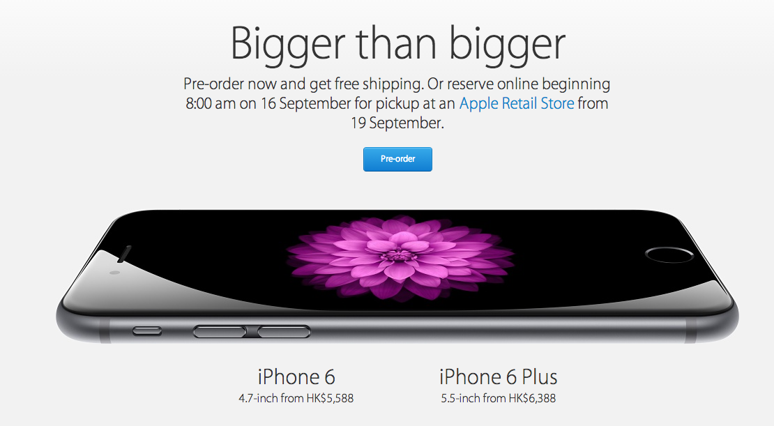 ตามที่ Apple ได้ประกาศไว้ในงานเปิดตัว iPhone 6 และ iPhone 6 Plus ว่าจะเปิดให้กลุ่มประเทศแรกได้สั่งจองทั้ง 2 รุ่นได้ในวันที่ 12 กันยายนต้นไป เหล่าสาวกแห่เข้าไปสั่งจองกันจนเว็บ Apple ล่มกันหลายต่อหลายครั้งทีเดียว ล่าสุดสินค้าก็เริ่มเต็มโค้วต้าแล้ว อย่างที่ประเทศฮ่องกงและสิงคโปร์ iPhone 6 Plus ยอดสั่งจองเต็มไปก่อนใครจนไม่สามารถกดสั่งจองได้แล้ว ขณะที่ iPhone 6 สินค้าต่อคิวยาวไปถึงเดือนตุลาคมเป็นที่เรียบร้อย