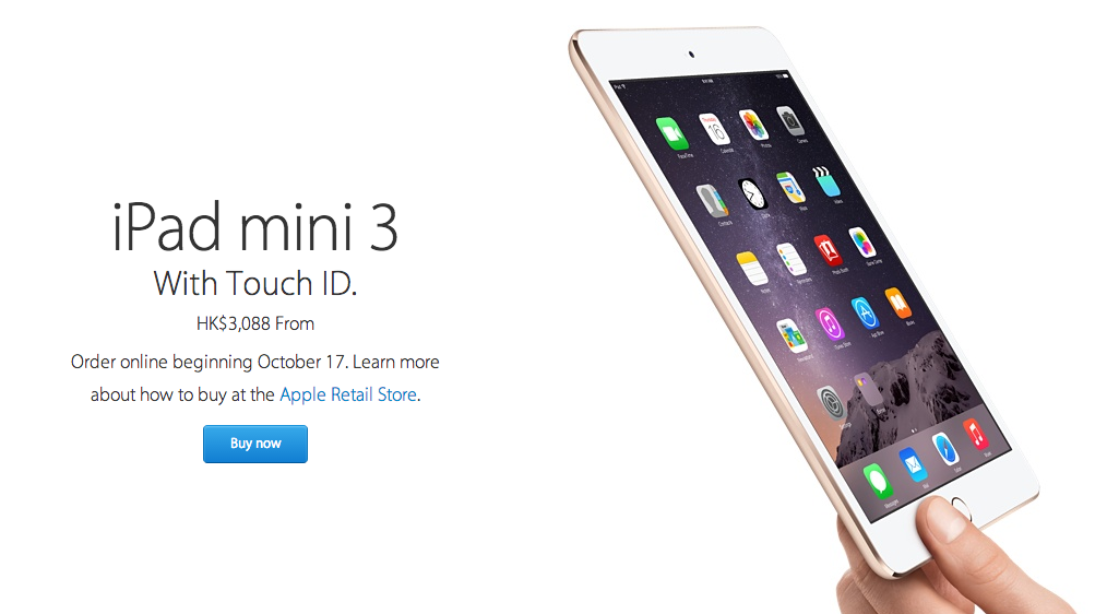 - iPad mini 3 Wi-Fi 64GB ราคา 3888 HKD ราว 16,200 บาท