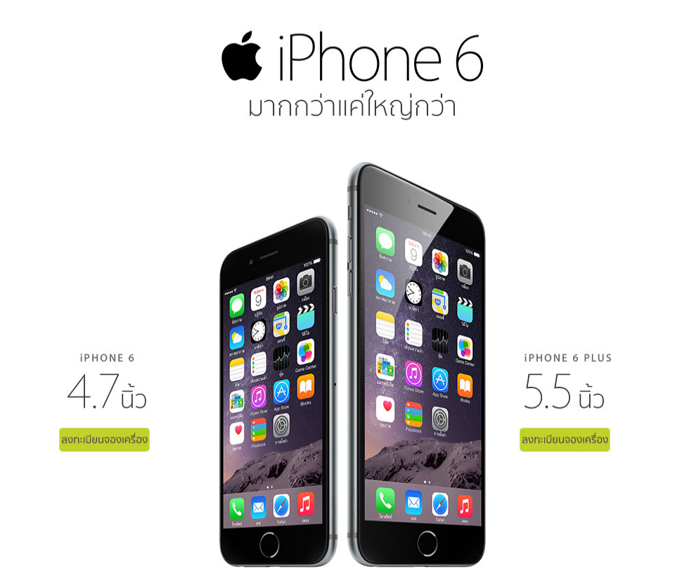 วันนี้ทาง AIS ได้ส่ง SMS ไปยังผู้ที่ได้ทำการลงทะเบียนแสดงความสนใจ iPhone 6 และ iPhone 6 Plus เตรียมเปิดให้เลือกรุ่นและสาขาที่รับเครื่องผ่านหน้าเว็บไซต์ www.ais.co.th/iPhone6 ในวันที่ 24 ตุลาคมเวลา 11.00 น. เป็นต้นไป