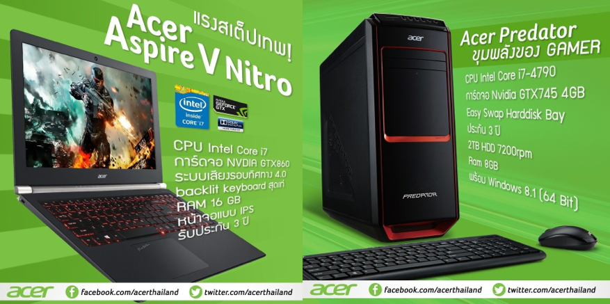 Acer แนะนำ Gaming Machine ทั้งโน็ตบุ็ค Aspire V Nitro และสุดยอดพีซีเกมเมอร์ Predator G3-605
