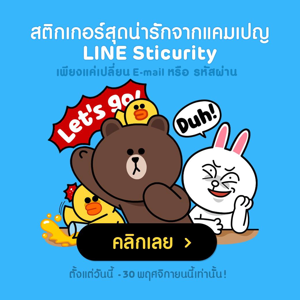 LINE Sticurity แคมเปญใหม่จาก LINE ประเทศไทย แจกสติกเกอร์สุดน่ารักฟรี  แค่เพียงเปลี่ยนอีเมล หรือรหัสผ่านที่ลงทะเบียนใน LINE ก็รับสติกเกอร์กันไปได้เลย นอกจากจะได้สติกเกอร์น่ารักๆ แล้ว ยังเป็นการรักษาความปลอดภัยของแอคเคาท์ LINE ของเรา ไม่ให้โดนขโมยโดยมิจฉาชีพอีกด้วย