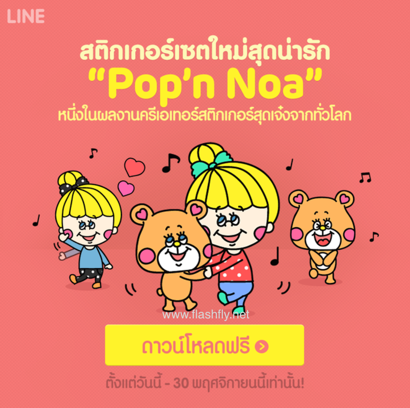 LINE แจกฟรีสติกเกอร์ Pop’n Noa ตั้งแต่วันนี้ถึง 30 พฤศจิกายนนี้