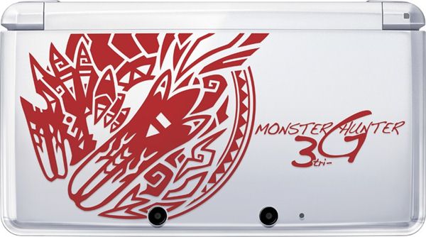 จากข่าวที่แล้ว Nintendo เพิ่งเปิดตัวสีใหม่ Ice White ไปล่าสุดก็มีการจับมือกับ Capcom เตรียมออก Monster Hunter 3G ชุดพิเศษสำหรับ 3DS ในชื่อ Monster Hunter 3G Special Pack จะวางจำหน่ายในวันที่ 10 ธันวาคมในราคา 20,800 เยน (ประมาณ 8,400 บาท) โดยตัวเครื่อง 3DS จะสกรีนเป็นลายมังกรที่ชื่อ บราคิดิออส มังกรตัวเอกที่อยู่บนกล่องนั่นเอง