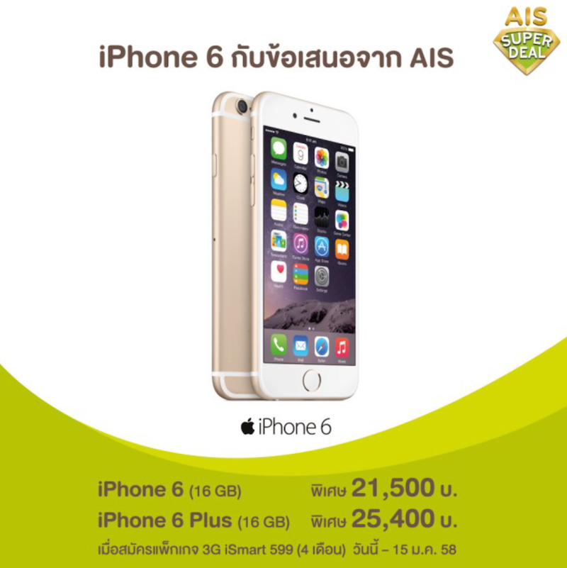 AIS Super Deal จัดหนักกว่าเดิมหั่นราคา iPhone 6 และ iPhone 6 Plus ลง 4,000 บาทเริ่มต้นที่ 21,500 บาท