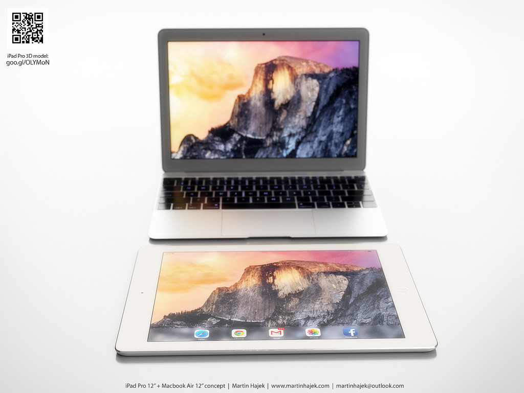 กลับมาอีกครั้งกับภาพคอนเซปสวยๆของผลิตภัณฑ์ใหม่จาก Apple ฝีมือของนาย Martin Hajek เจ้าเก่า ที่ครั้งนี้ได้ทำการเรนเดอร์ภาพ iPad หน้าจอขนาดใหญ่ 12 นิ้วหรือ iPad Pro มาเทียบขนาดกับ MacBook Air หน้าจอ 12 นิ้วรุ่นใหม่ที่เป็นลือมานาน โดยผลิตภัณฑ์ทั้ง 2 รุ่นนี้คาดว่า Apple จะเปิดตัวและวางจำหน่ายในปี 2015 นี้