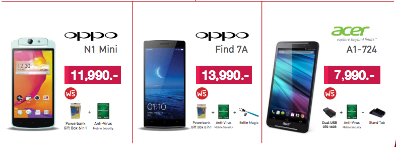 - สมาร์ทโฟน OPPO Find 7A ราคาเพียง 13,990 พร้อมรับฟรี!ทันที Power bank Gift Box 6 in 1 / Anti-Virus Mobile Security / ไม้ Selfie Magic