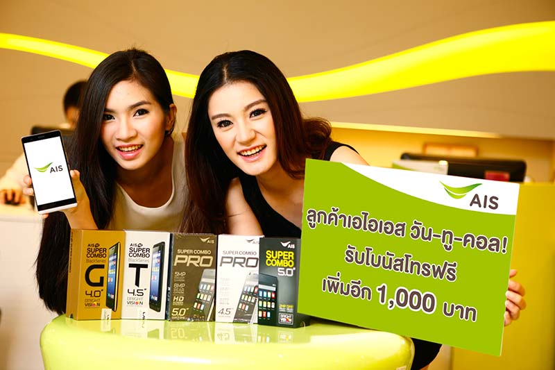 เอไอเอส วัน-ทู-คอล! ต้อนรับซัมเมอร์ เอาใจสาวกสมาร์ทโฟนด้วยแคมเปญสุดฮอต AIS Super Combo Super Bonus โดยมอบโบนัสค่าโทรฟรีเพิ่มอีก 1,000 บาทจากโปรโมชั่นปัจจุบัน ให้ลูกค้าที่ซื้อสมาร์ทโฟน 5 รุ่นสุดฮิต ได้แก่ Lava PRO 5.0 , Lava PRO 4.5 , Lava 5.0 , Lava T 4.5 และ Lava G 4.0 อาทิ รุ่น Lava PRO 5.0” รับโบนัสโทรฟรี 4,000 บาทจากโปรโมชั่นปัจจุบัน และจะได้รับ Super Bonus ค่าโทรฟรีเพิ่มอีก 1,000 บาท รวมรับค่าโทรฟรีทั้งสิ้น 5,000 บาท เป็นต้น ลูกค้าเอไอเอส วัน-ทู-คอล! สามารถรับ Super Bonus ได้แล้วตั้งแต่วันนี้ – 30 เม.ย.58 ที่เอไอเอส ช็อป , ร้านเทเลวิซ และร้านค้าที่ร่วมรายการทั่วประเทศ ดูรายละเอียดเพิ่มเติมได้ที่ www.ais.co.th/supercombo