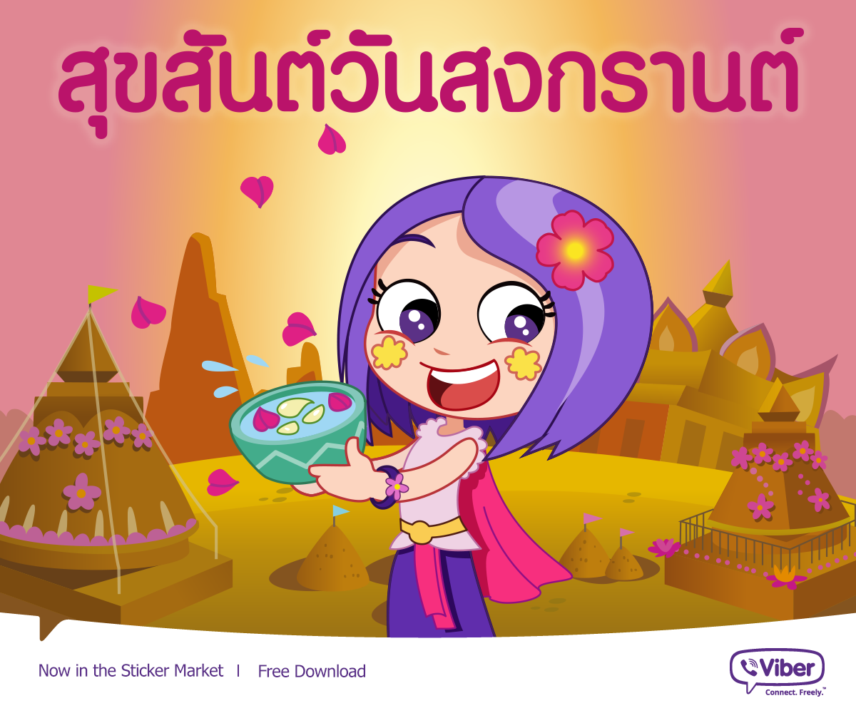 ไวเบอร์ ผู้ให้บริการแอพพลิเคชั่นติดต่อสื่อสารผ่านทางมือถือระบบ “OverThe-Top”(OTT) ชั้นนำ โดยให้บริการส่งข้อมูลและโทรศัพท์ความคมชัดระดับ HD ฟรี ปล่อยตัวสติ๊กเกอร์ภาษาไทย เอาใจผู้ใช้ชาวไทยและเพื่อต้อนรับเทศกาลสงกรานต์โดยเฉพาะ สติ๊กเกอร์ชุด “สวัสดีเมืองไทย” นี้เป็นสติ๊กเกอร์ภาษาไทยชุดแรกสำหรับไวเบอร์