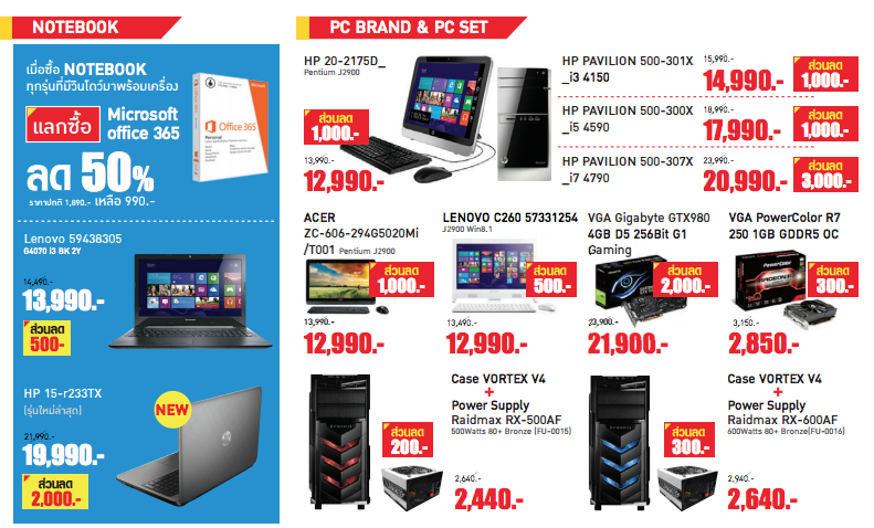 - พีซีแบรนด์ พีซีเซ็ตจากแบรนด์ดังอาทิ HP, Acer, Lenovo รับส่วนลดสูงสุด 3,000.-