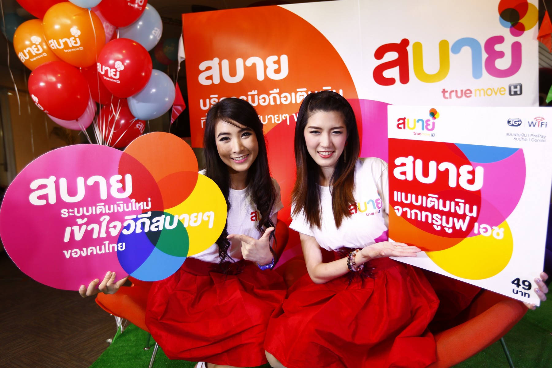 ดร.กิตติณัฐ ทีคะวรรณ หัวหน้าคณะผู้บริหารด้านการพาณิชย์ ธุรกิจโมบายล์ บมจ. ทรู คอร์ปอเรชั่น กล่าวว่า “ปัจจุบันข้อมูล ณ สิ้นไตรมาส 4 ปี 2557 ทรูโมบายล์ มีลูกค้าทั้งสิ้น 23.65 ล้านราย แบ่งเป็นลูกค้าแบบรายเดือน 3.88 ล้านราย และลูกค้าเติมเงิน 19.77 ล้านราย เราตั้งเป้าที่จะขยายฐานลูกค้า โดยเจาะกลุ่มลูกค้าที่ใช้มือถือทั้งในกรุงเทพฯ และต่างจังหวัด เน้นการโทรเป็นหลักต้องการควบคุมค่าใช้จ่าย และมองหาบริการที่ให้ความคุ้มค่าสูงสุดทั้งในเรื่องราคา คุณภาพเครือข่าย และสิทธิพิเศษต่างๆ เราจึงได้ปั้นแบรนด์ใหม่ “สบาย” ใช้สื่อสารกับลูกค้าแบบเติมเงิน ซึ่งสะท้อนถึงจุดเด่นของระบบเติมเงินทรูมูฟ เอชได้เป็นอย่างดี มอบความสบายให้กับลูกค้าของเราในทุก ๆ ด้าน ทั้งค่าโทรที่มอบความคุ้มค่าสูงสุด มีให้เลือก 3 โปรโมชั่นสุดคุ้ม ได้แก่ โทรสบายทุกค่าย โทรสบายในก๊วนและโทรสบายบ่อยบ่อย คิดค่าโทรตามจริงเป็นวินาที เริ่มต้นเพียงวินาทีละ 1 สตางค์เท่านั้น นอกจากนี้ เรายังเข้าใจถึงไลฟ์สไตล์ของลูกค้าที่มีรูปแบบและพฤติกรรมการโทรที่แตกต่างกันไป เราจึงเพิ่มความสบายใจให้ลูกค้าสามารถเปลี่ยนโปรภายในกลุ่มสบายนี้ได้ไม่จำกัด ไม่มีค่าใช้จ่าย เพียงโทร 9305 เรามั่นใจว่าการปรับแบรนด์ “สบาย” ในครั้งนี้ จะสร้างความพึงพอใจในการใช้งานได้อย่างสูงสุด และยังช่วยขยายฐานลูกค้าแบบเติมเงินของเราให้เพิ่มสูงขึ้น”