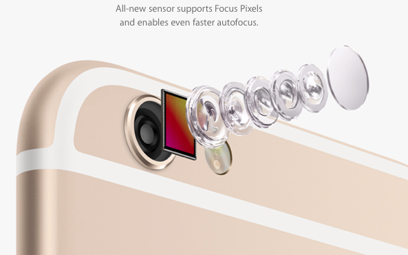 โดย Apple ได้ใช้กล้องดิจิตอลความละเอียด 8 ล้านพิกเซลที่กล้องด้านหลังของ iPhone มาตั้งแต่รุ่น iPhone 4S ที่เปิดตัวไปตั้งแต่ 2011 ถือว่าใช้มานานกว่า 4 ปีทีเดียว ซึ่งคาดว่าในรุ่น S ของ iPhone รุ่นใหม่จะมีการเปลี่ยนแปลงเสมอ ซึ่งถ้ามองย้อนกลับไป iPhone 4 มีกล้องความละเอียด 5 ล้านพิกเซล และ iPhone 3GS มีกล้องความละเอียด 3 ล้านพิกเซล