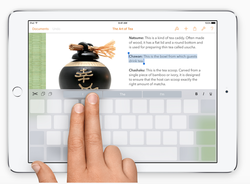 QuickType การปรับปรุงประสิทธิภาพการพิมพ์ให้ดีขึ้นด้วย All new Shortcut bar ที่สามารถปรับตัวอักษรเป็นตัวเอียง ตัวหนา ได้ง่ายขึ้น อีกทั้งยังสามารถเลือกข้อความได้ง่ายขึ้นอีกด้วย